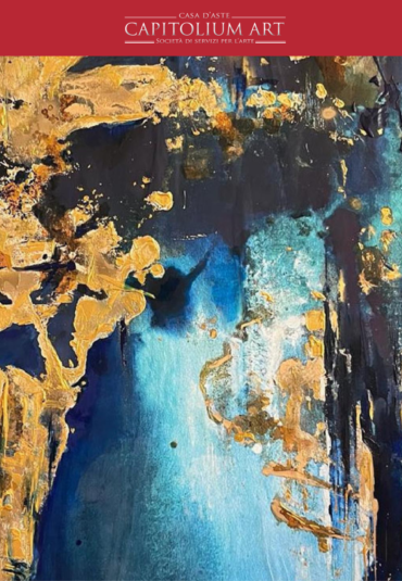 La particolarità stà nella trattazione del colore, nella sua corporalità d’armonizzazione del silenzio, della leggera decantazione degli odori, dei sapori, della tattilità. Tutto si tiene, in una narrazione fertile, fatta di istintività e razionalità aderenti ad una moderna emozionalità, che non è reale e neanche realistica, per quanto possa sembrare mimetica fino all’esuberanza, anche quando parte da una natura morta, sia essa un’arancia, sia essa un limone, tradotti in metafora surreali, onirica, come se fosse stata contagiata da una dritta di Magritte o da un rovescio di Dalì, in un realismo visionario” (Gallo Mazzeo). E questa traduzione del reale di cui parla Gallo Mazzeo, tra sospensione figurale e particolare trattazione del colore, dà vita alle recenti serie Baroque waves e Equazioni di cui Gocce dagli dei è diretta prosecuzione. E se l’idea di metallo lucente presente nelle opere della serie Nero napoletano sembrava liquefarsi nel movimento di corpi e oggetti qui diventa, nell’accezione argento e oro, prezioso ornamento delle tele, accostato a tonalità più neutre che vanno dal grigio al bianco oppure a colori minerali come il blu cobalto, il rosso scuro o il verde smeraldo. Una pittura preziosa, che ha mantenuto tutto l’estro di quel barocco napoletano o delle pitture pompeiane che appartengono al passato di Donatelli ma che fanno parte, comunque, di quell’orizzonte partenopeo che è sempre presente nel suo lavoro anche se ormai completamente svincolato da modelli esterni perché diventato linguaggio unico e personale di un’artista che ha compiuto e continua a compiere un personale cammino di ricerca.
